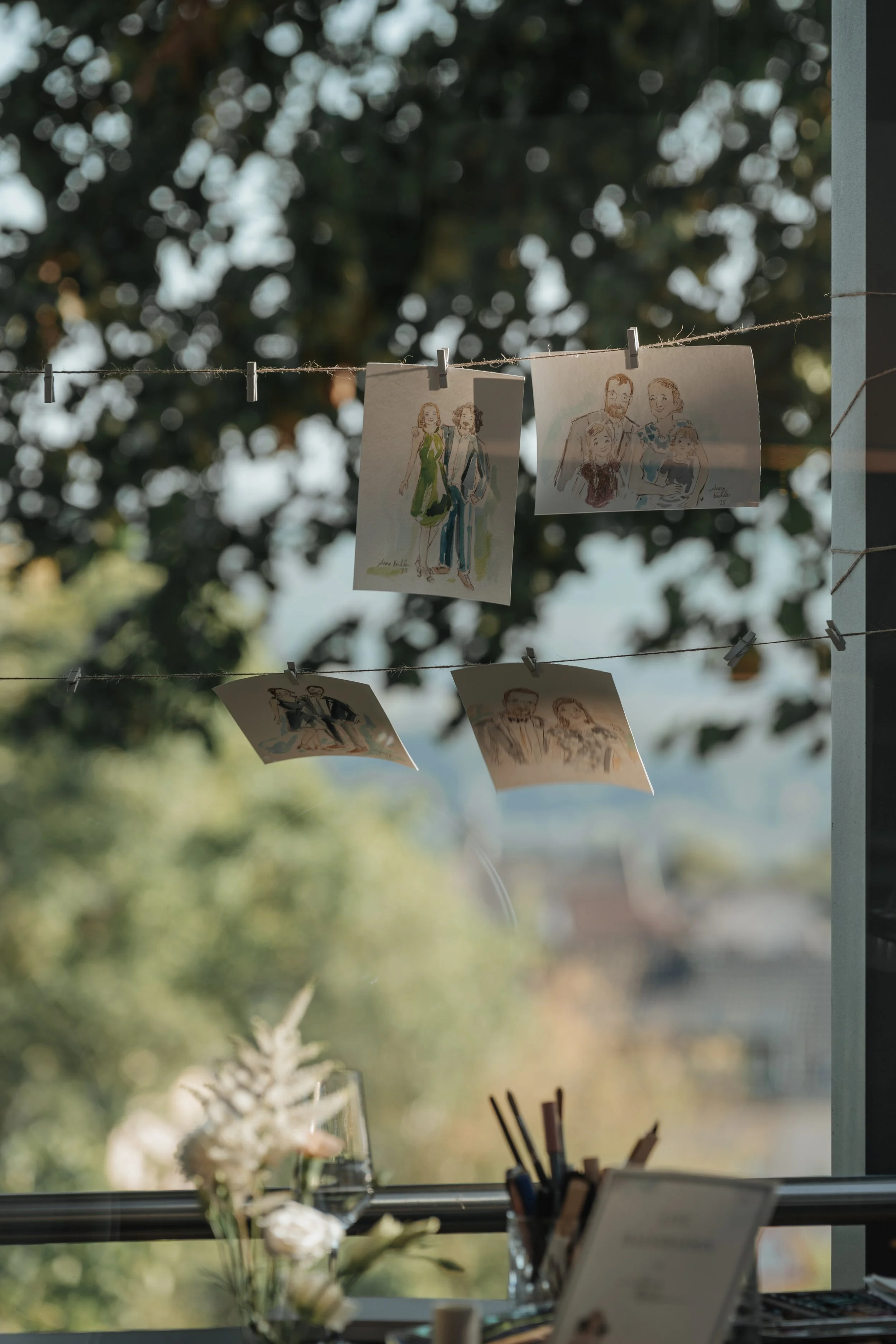 Sur place se crée ainsi une petite galerie de votre journée : portraits, rencontres et instants qui captent l’ambiance de votre fête. À la fin, les invités peuvent emporter leur illustration comme souvenir précieux – un morceau de votre histoire qui restera.